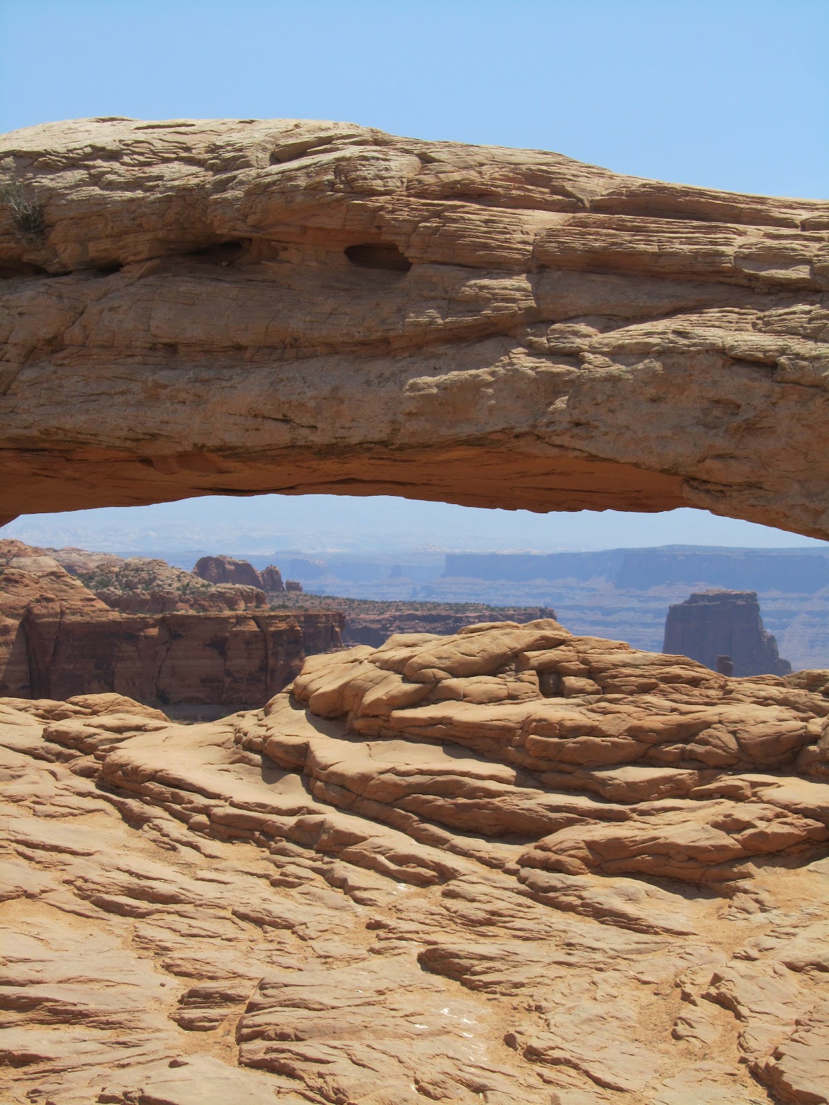 We went to the visitors centre and planned our day to make sure we could cover all that we wanted in the time available. First port of call was Mesa Arch – an impressive arch of stone balanced on the edge of a precipice. I tried to get Rachel to stand on top for a photo but she declined! This was no where near as big or impressive as Delicate Arch in Arches but well worth the visit. The temperature was climbing quickly and it was clear that it was going to be extremely hot.