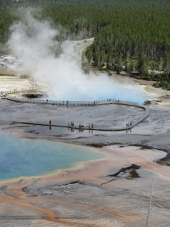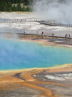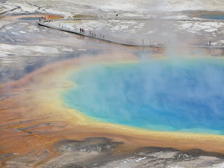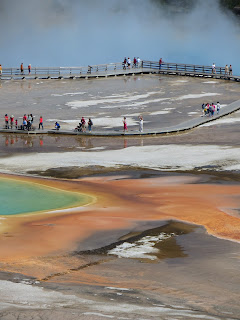 We had visited Prismatic Spring before but were determined to photograph it from above, as we had seen so many wonderful images in the weeks and months leading up to our visit. We took the Fairy Falls trailhead walk towards the spring and looked for the path up the hillside opposite; not an official path but one we new existed from our research. It was a steep and quite difficult climb but within minutes we knew it would be worth the effort. We reached a vantage point overlooking the spring and here are a few of the photos we took. If only they could do it justice; this was one of the most lovely and unusual scenes we had ever experienced.