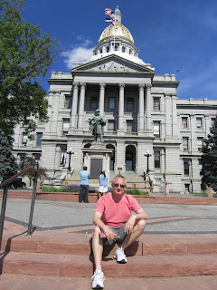 Our first night in Denver was spent in a Mongolian restaurant. We were given a bowl each and asked to choose from a large selection of raw meats, fish and vegetables from a bar. Then we had to choose a sauce or combination of sauces and put them into another little bowl. Finally there were spices to choose from. All this we took to a large circular kitchen with a circular hot plate, where a guy cooked what we brought to him. He used two long metal spatulas to skillfully mix, flip and chop our food, adding our sauces and serving it all on plates for us to take back to our table. We were able to return as many times as we wanted. We only managed two trips!