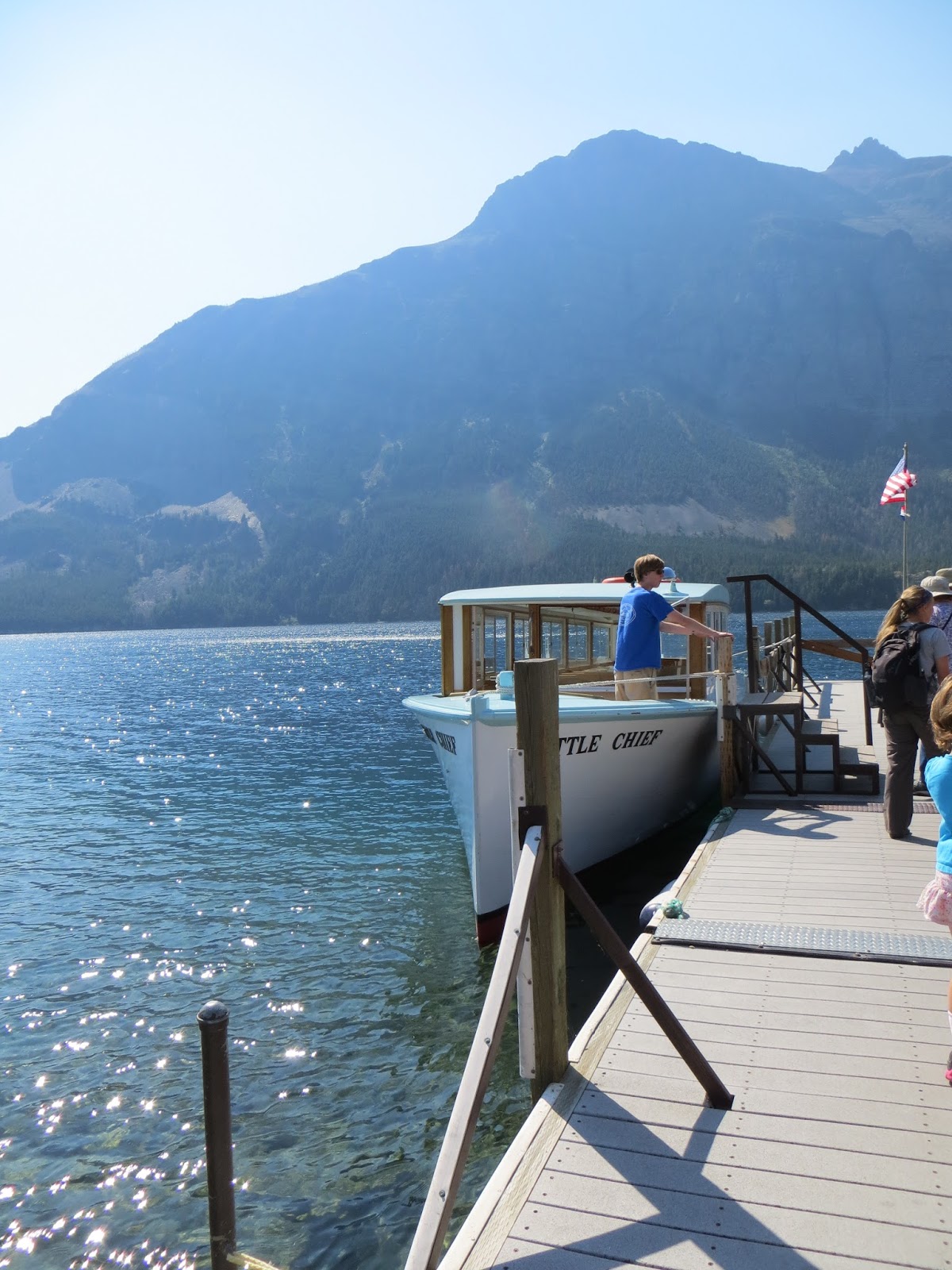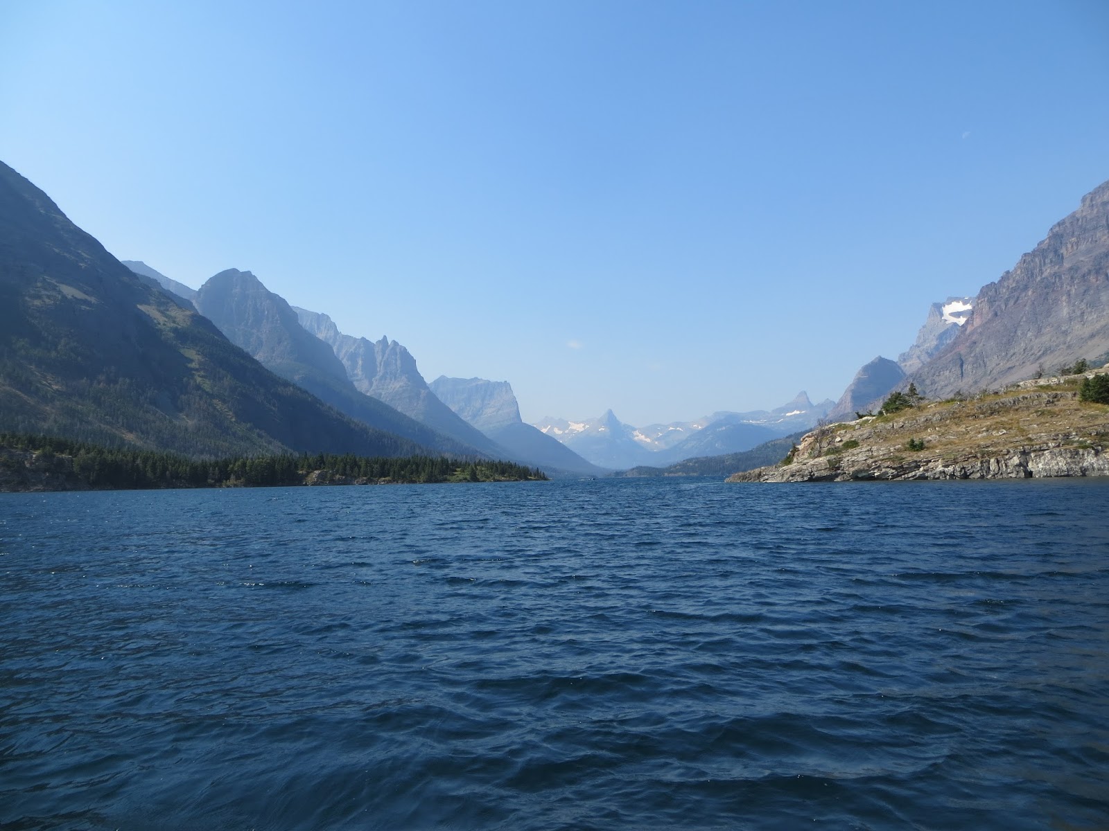 I have to admit that it was a relief to reach St Mary’s Lake at the far side of the park, after two hours driving. We noticed a sign advertising boating trips on the lake and we jumped at the opportunity to escape the traffic if nothing else. This turned out to be the best decision we made as the trip along the lake was tranquil and awe inspiring.