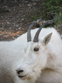 We had read that mountain goats are very friendly and placid, which turned out to be a relief as we encountered a number of them along the way, one of which was stood in the middle of the path without any inclination to move.