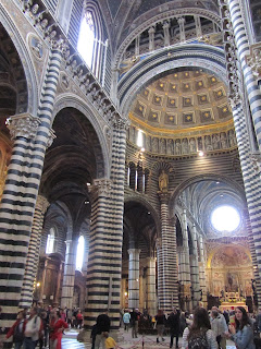 We awoke to brilliant sunshine and a significantly warmer day. Bologna had been a disappointment and Florence had been a bit of a wash out. But we had high hopes for Siena. The journey took only about an hour and we were lucky enough to find a free car park just outside the city centre. We headed straight for the Piazza del Campo through some beautiful streets. Siena is quite hilly, which makes the streets more interesting. We liked Siena immediately.